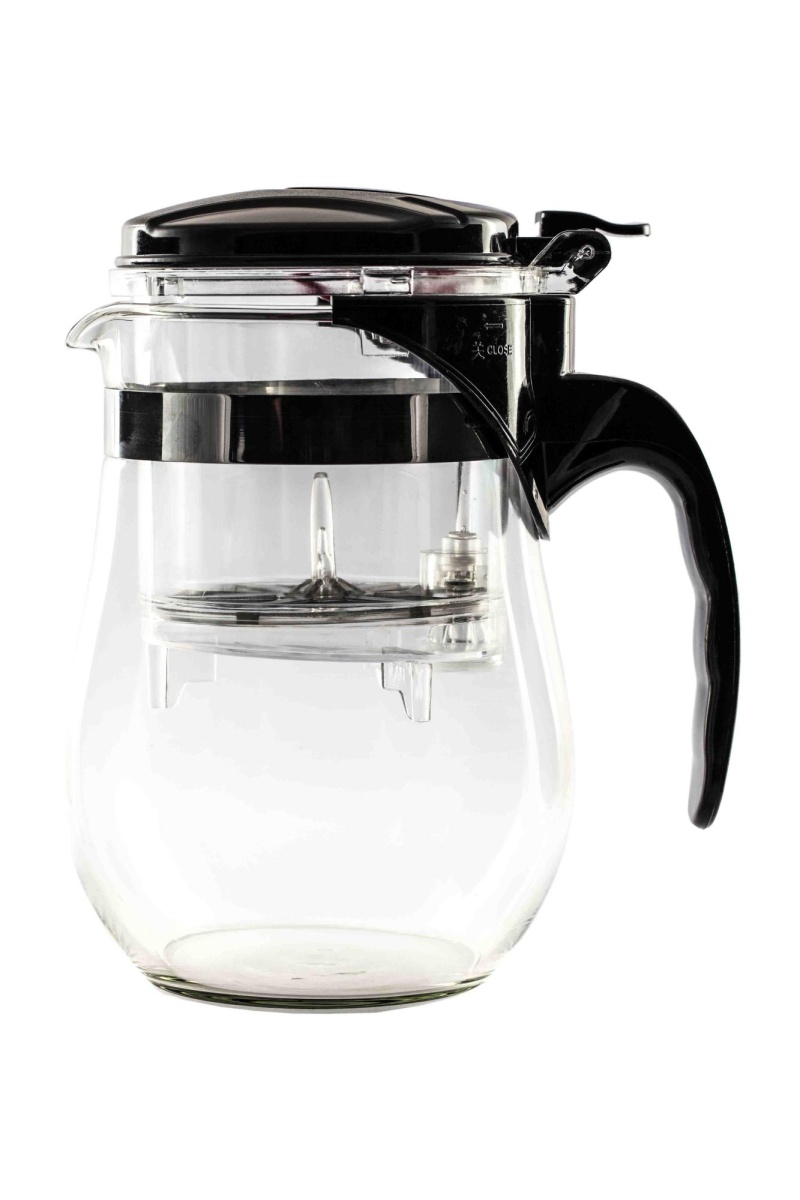Чайник из жаропрочного стекла для заваривания чая с механизмом "Гунфу", который помогает контролировать время заваривания чая. Внутри чайника находится заварочная колба, в которую насыпается чай и заливается горячей водой. Когда чай заварился, нужно нажать кнопку на крышке чайника и заваренный чай сольется в нижнюю колбу, а чаинки останутся в фильтре и чай не перезаварится. Чайник объёмом 1000 мл упакован в фирменную коробку.