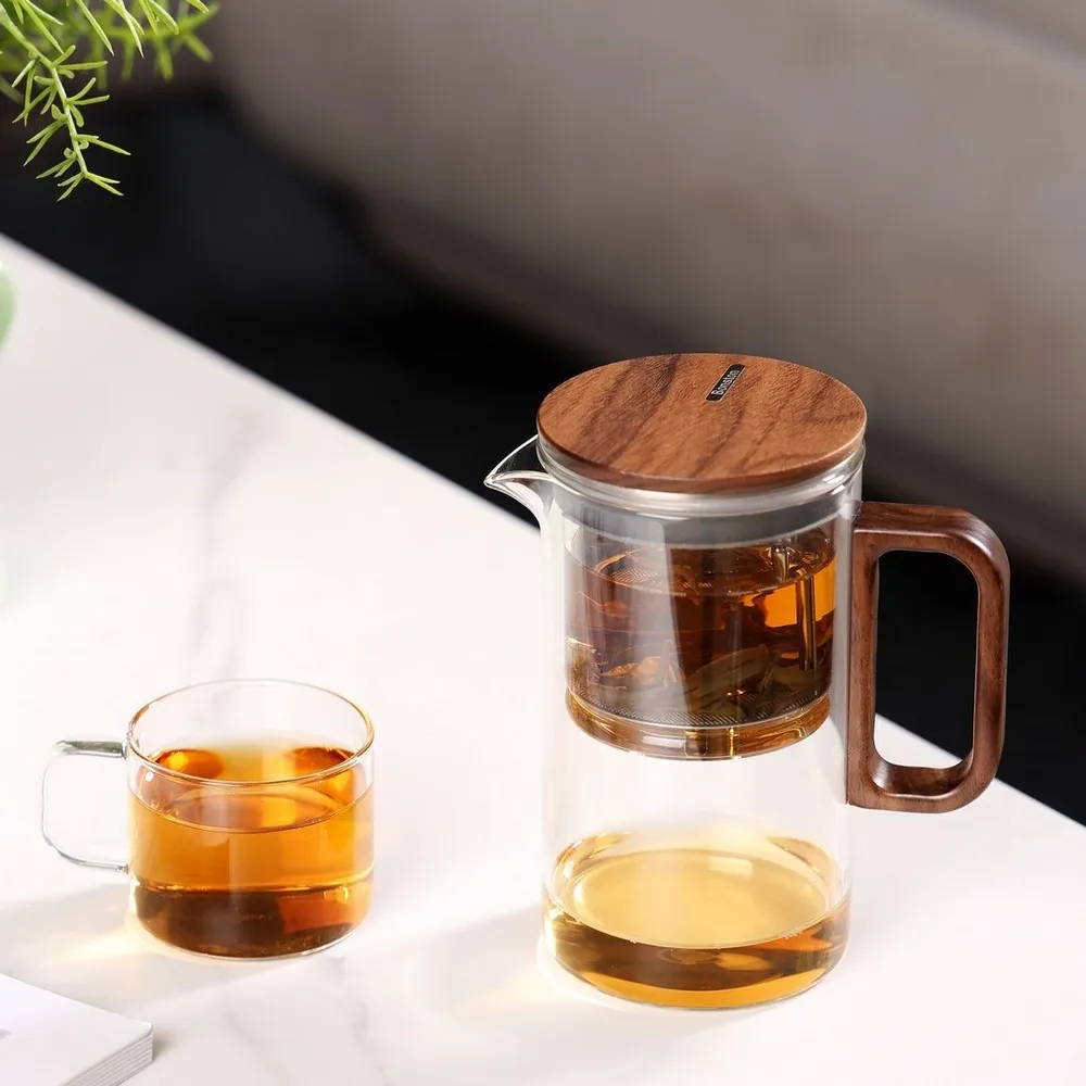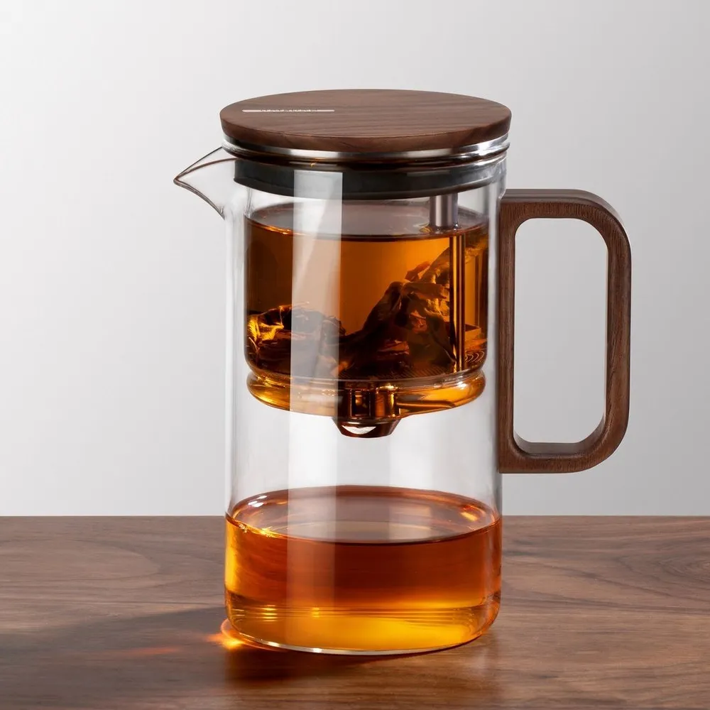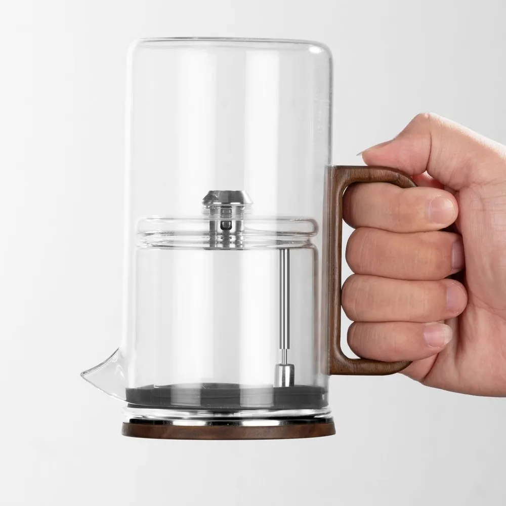 - Эстетика и практичность:Стеклянная колба демонстрирует красоту заваривания, а деревянные элементы добавляют уют и теплоту.