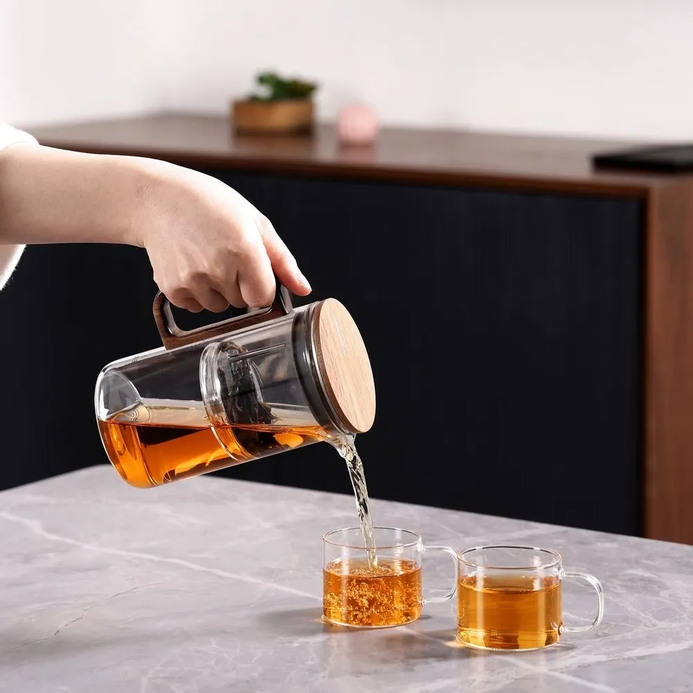 - Заварочная колба из стекла: Прозрачная колба объемом 200 мл позволяет наблюдать за процессом заваривания чая, что особенно важно для ценителей чайных церемоний. Внутренний фильтр из нержавеющей стали обеспечивает равномерное заваривание и удерживает чаинки.